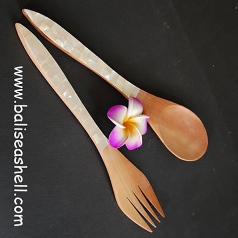Seashell Jewel Display Cuillère et fourchette en bois naturel avec MOP Motive Mosaic Art pour cadeaux