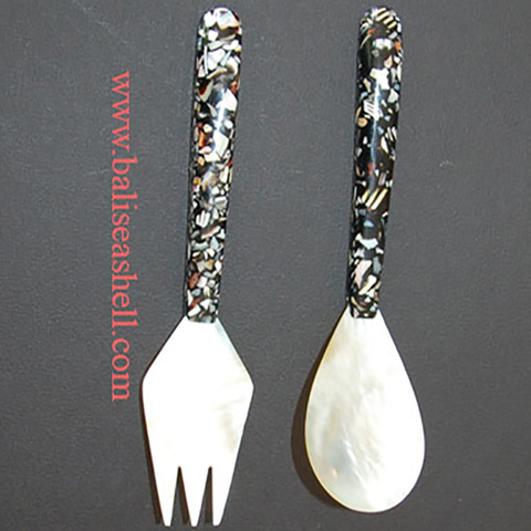 Zeeschelp Sieraden Lepel En Vork Set Parelmoer Inlay Met Motief Kunst Mozaïek