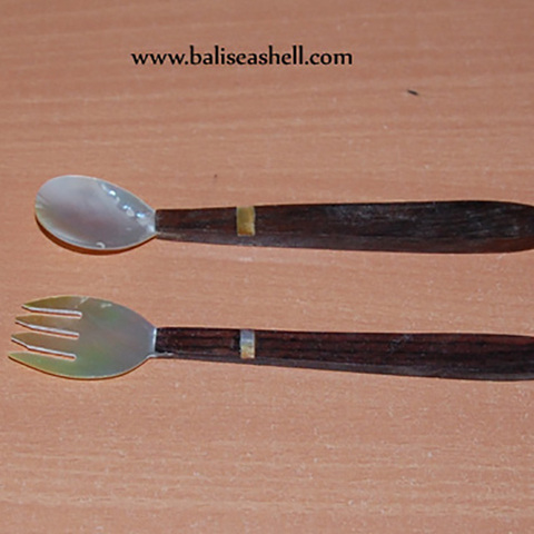 SEASHELL JEWELRY Motif Spoon and Fork Set Wooden Art Tableware with Shell